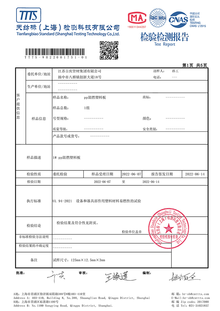 PPH管件檢測(cè)報(bào)告